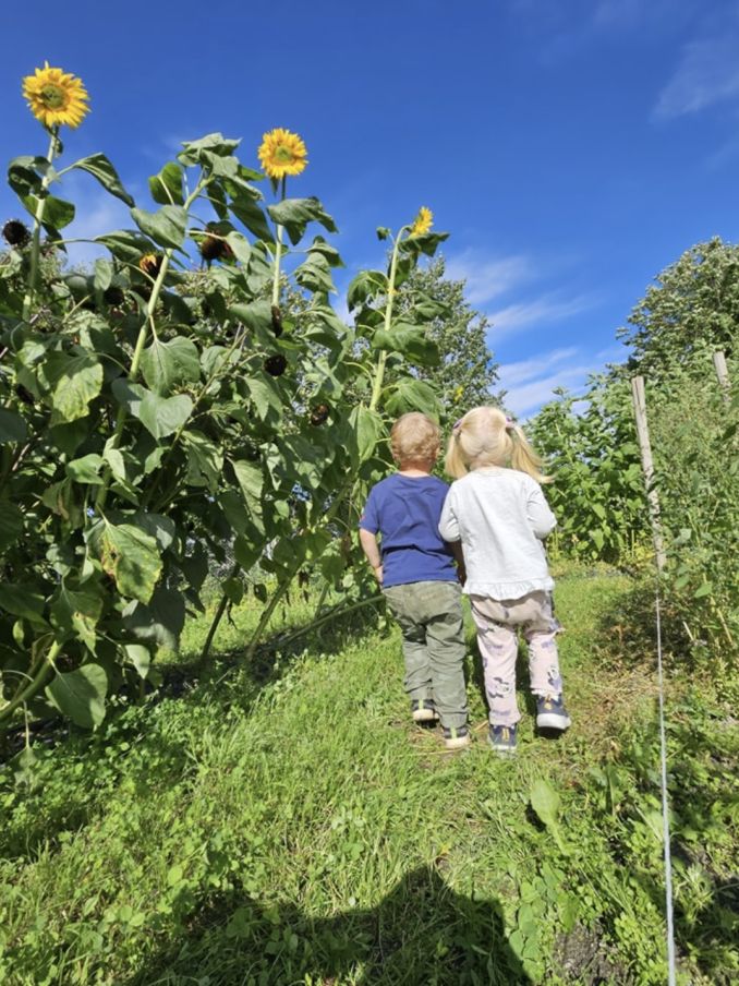 I Medbroen gårdsbarnehage utnytter vi gårdens ressurser på en bærekraftig og kreativ måte. For eksempel blir frøene fra solsikkene vi dyrker til fuglemat, og frøene brukes til å plante nye solsikker året etter. Dette er en naturlig syklus og lærer barna om gjenbruk og naturens kretsløp.
