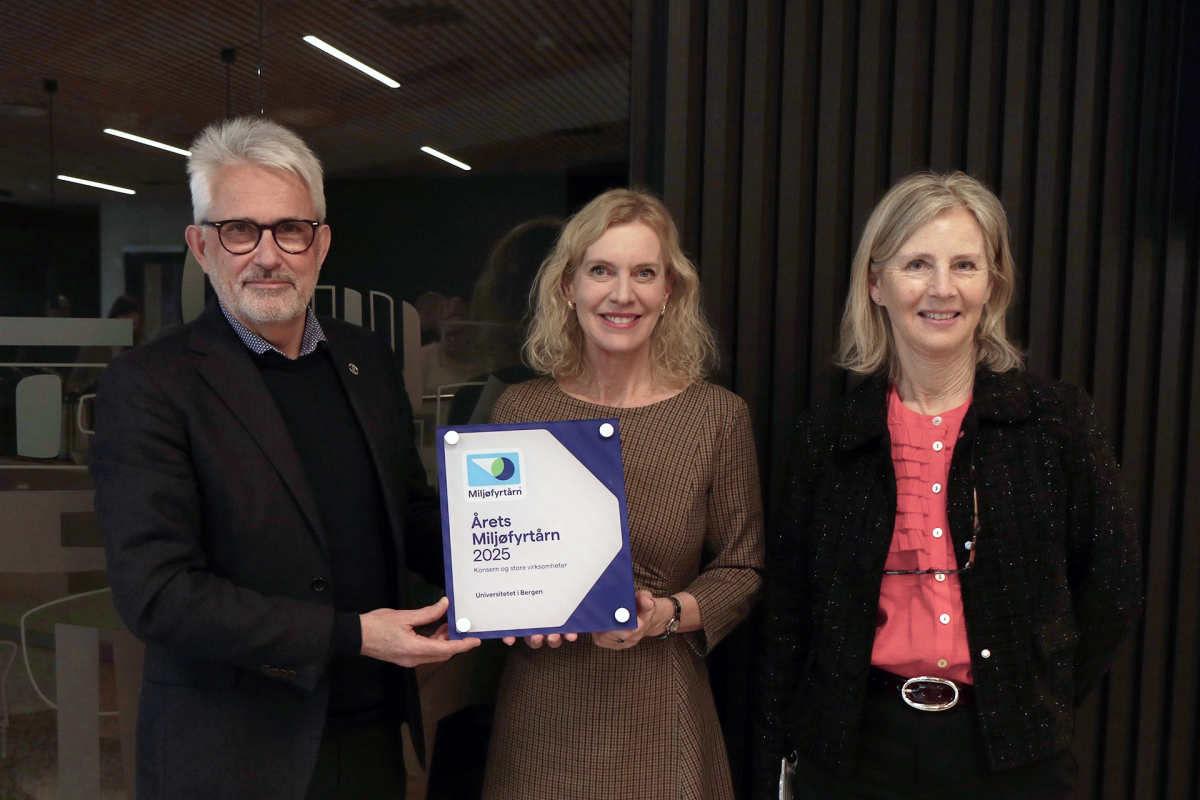 – Gjennom forskning, undervisning og omfattende miljøtiltak på virksomhetsnivå, bidrar UiB både direkte og indirekte til grønn omstilling. UiB er et strålende eksempel på hvordan en stor virksomhet kan tenke helhetlig om bærekraft og miljøledelse. Det er derfor en stor glede å kunne overrekke dem prisen for Årets Miljøfyrtårn 2025, avslutter Ann-Kristin Ytreberg.