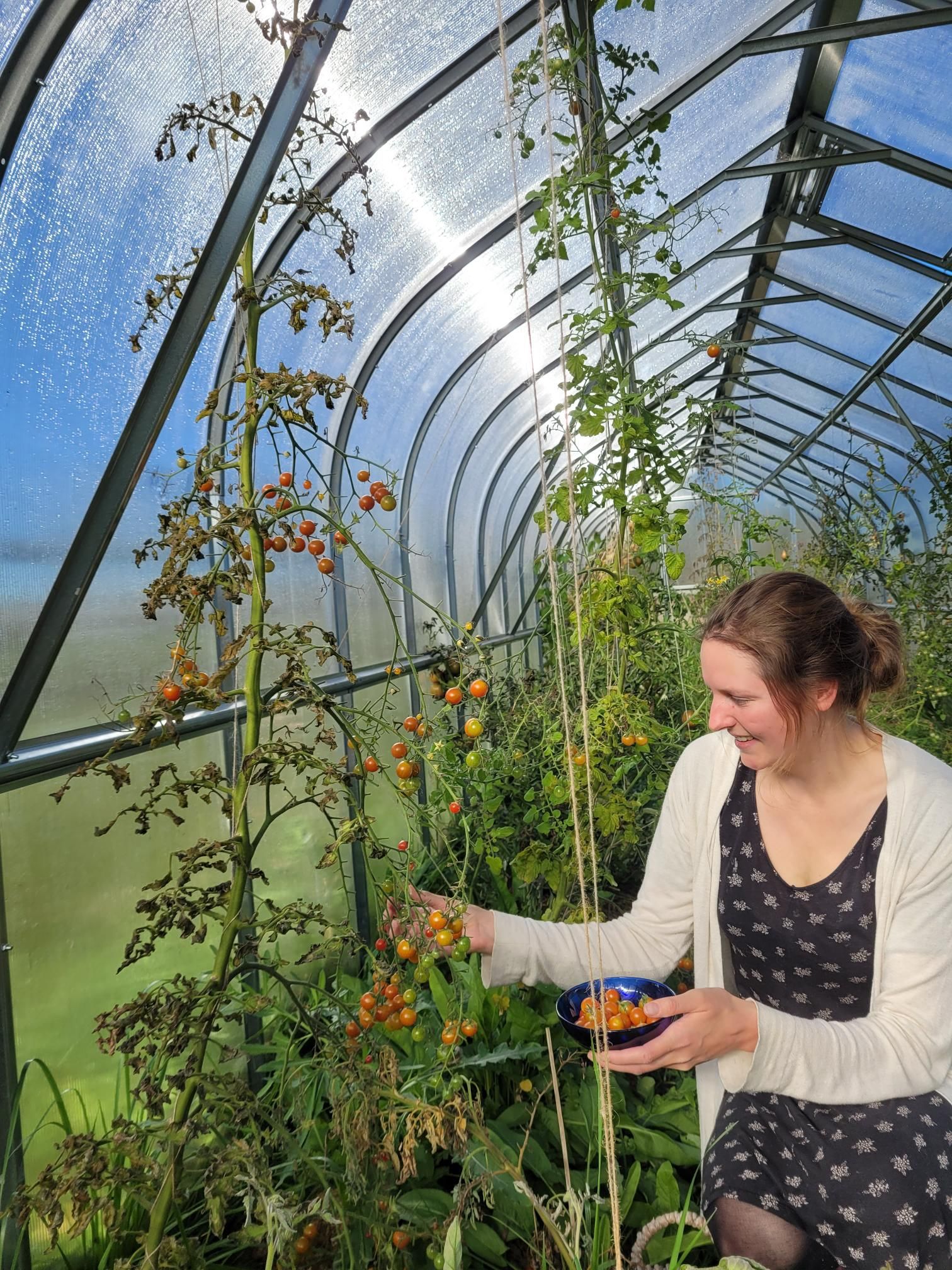 Hjemme på småbruket har hun et ønske om å lage et område hvor det er god plass til dyr, natur og mikroorganismer – og med minst mulig miljøbelastning. Det skal være et økologisk landbruk som tiltrekker seg insekter og fugler, og med håp om egen matproduksjon. I drivhuset er målet for året å få 50 kilo tomater. Det er tross alt bare hennes første år på småbruket.