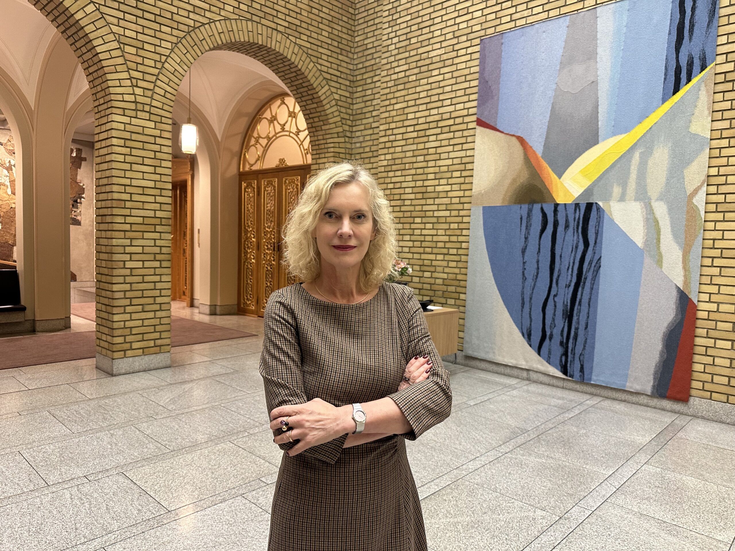 FOTO fra Miljøfyrtårn: Ann Kristin Ytreberg på vei inn til komitéhøringene ved Stortinget.