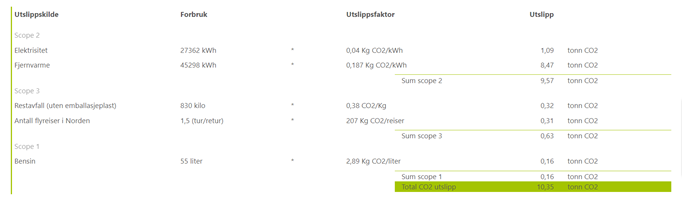 Skjermbilde av utslippstall fra Miljøfyrtårns klimaregnskap