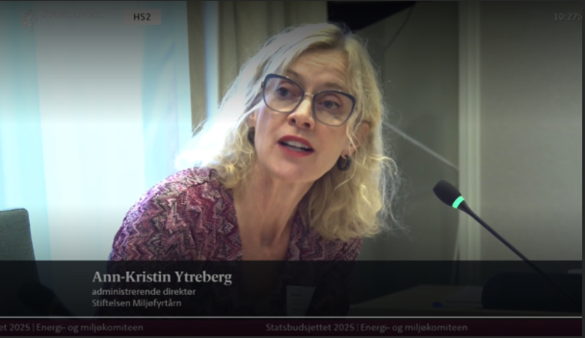 Se Miljøfyrtårns innlegg i Stortingets energi- og miljøkomité, minutt 12:45.