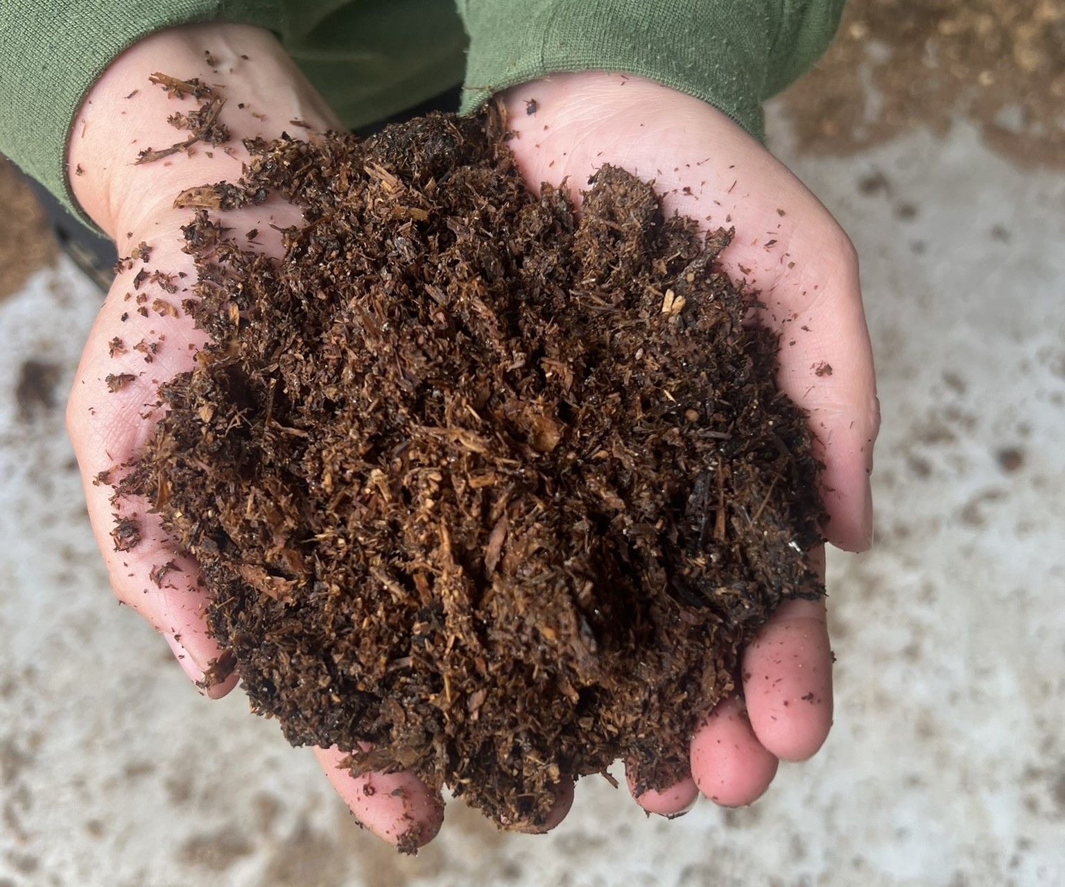 – Vi bruker det selv i kjøkkenhagen og det fungerer strålende. Planen er å selge det både til privatpersoner og til kommunen, for bruk i parker og grøntområder. Vi har allerede tenkt ut et abonnementsopplegg: Kjøp en plastbøtte én gang, og hent påfyll så mye du vil – eller kom med henger og last på, forteller Terje Fidjestad Andreassen, fagarbeider på gården.