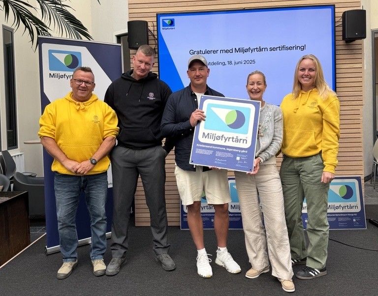 Et verdig Miljøfyrtårn: Geir Jønsrud, Chris Bjørnå, Espen Gusdal, varaordfører Charlotte Beckmann Finnestad og Christiane Brekne Holmen.